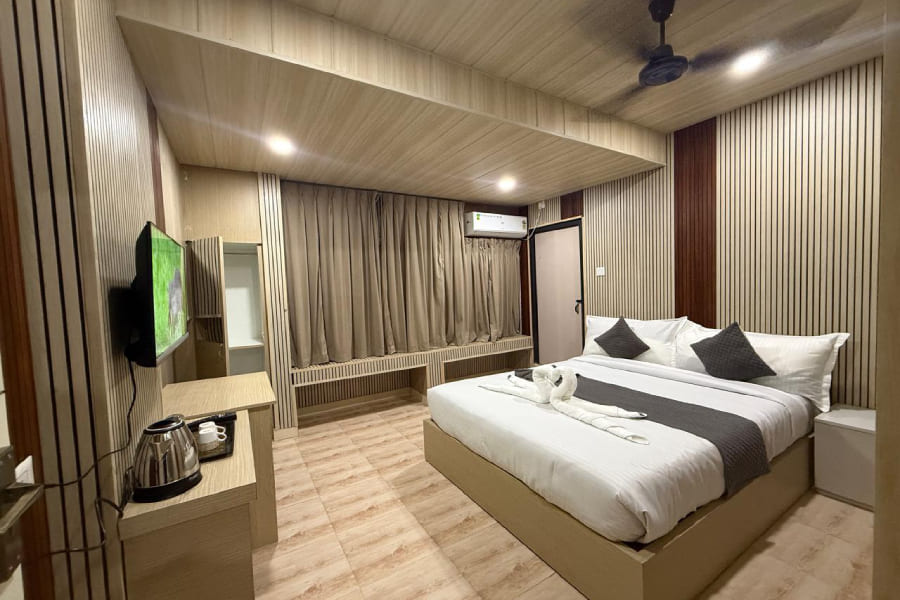 Step into our Classic Room and experience a perfect blend of simplicity, comfort, and style. Thoughtfully designed for relaxation and convenience, the room features a cozy bed with premium bedding, a well-lit work desk, and a soothing color palette that promotes rest and calm. Ideal for solo travelers, couples, or business guests, the Classic Room offers a serene retreat after a day of exploring Guwahati or attending meetings. The ambient lighting, spacious layout, and elegant furnishings create a warm and welcoming atmosphere for every guest.