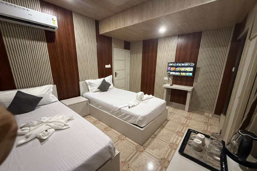 Equipped with all essential modern amenities including high-speed Wi-Fi, LED TV, air conditioning, a tea/coffee maker, and an attached bathroom with premium toiletries, the Elegant Room ensures a seamless and pampering stay. Guests can enjoy attentive room service, daily housekeeping, and 24/7 support from our hospitality team. Whether you're in Guwahati for a short visit or an extended stay, the Elegant Room provides a perfect balance of style and function for a truly elevated experience.